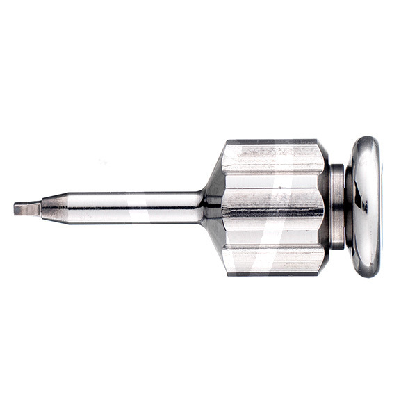 Récupérez la vis Konic Spider prévue avec le tournevis Driver Pick-Up. Procédez à l'insertion de la vis dans la zone préétablie. Le guide chirurgical fait office de butée mécanique pour la microvis et, une fois que la vis atteint la profondeur programmée, arrête le vissage. L'insertion doit s'arrêter lorsque le Pick-Up Stop atteint les tubes en acier inoxydable,